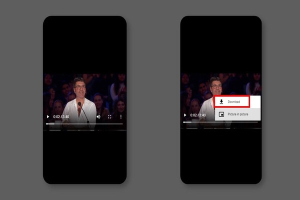 أما بالنسبة لمستعملي الهواتف فقط قم بالنقر على النقاط الثلاث العمودية بزاوية مشغل الفيديو بعدها ستنبثق لك بعض الخيارات, لتنتهي في الأخير بالنقر على خيار download